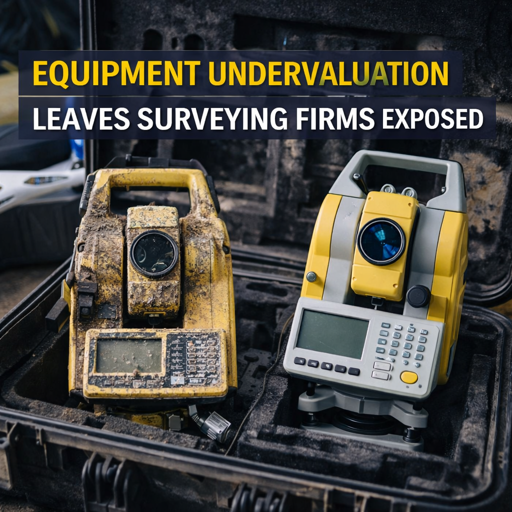 ACSIS Equipment Insurance, developed for surveyors, covers theft in open air, flood, and accidental damage with a $50,000 blanket limit for unspecified items such as total stations or drones.